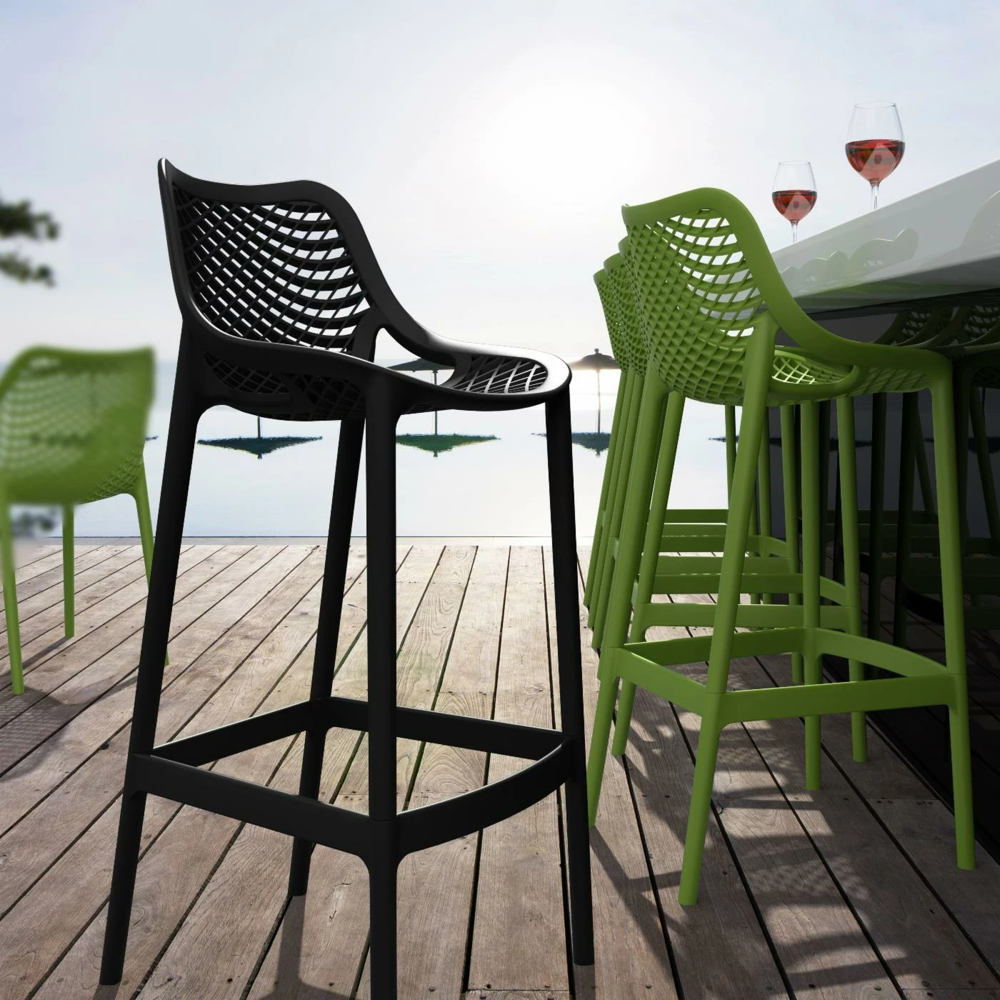 The secretβs in the resin polypropylene construction, which can withstand outdoor temperatures and conditions, including water and sun, so you can even use them poolside. Gas injection molded legs add even more durability. And the ultra-mod waffle seats are chic as can be, especially when you get to choose from a full range of color options.