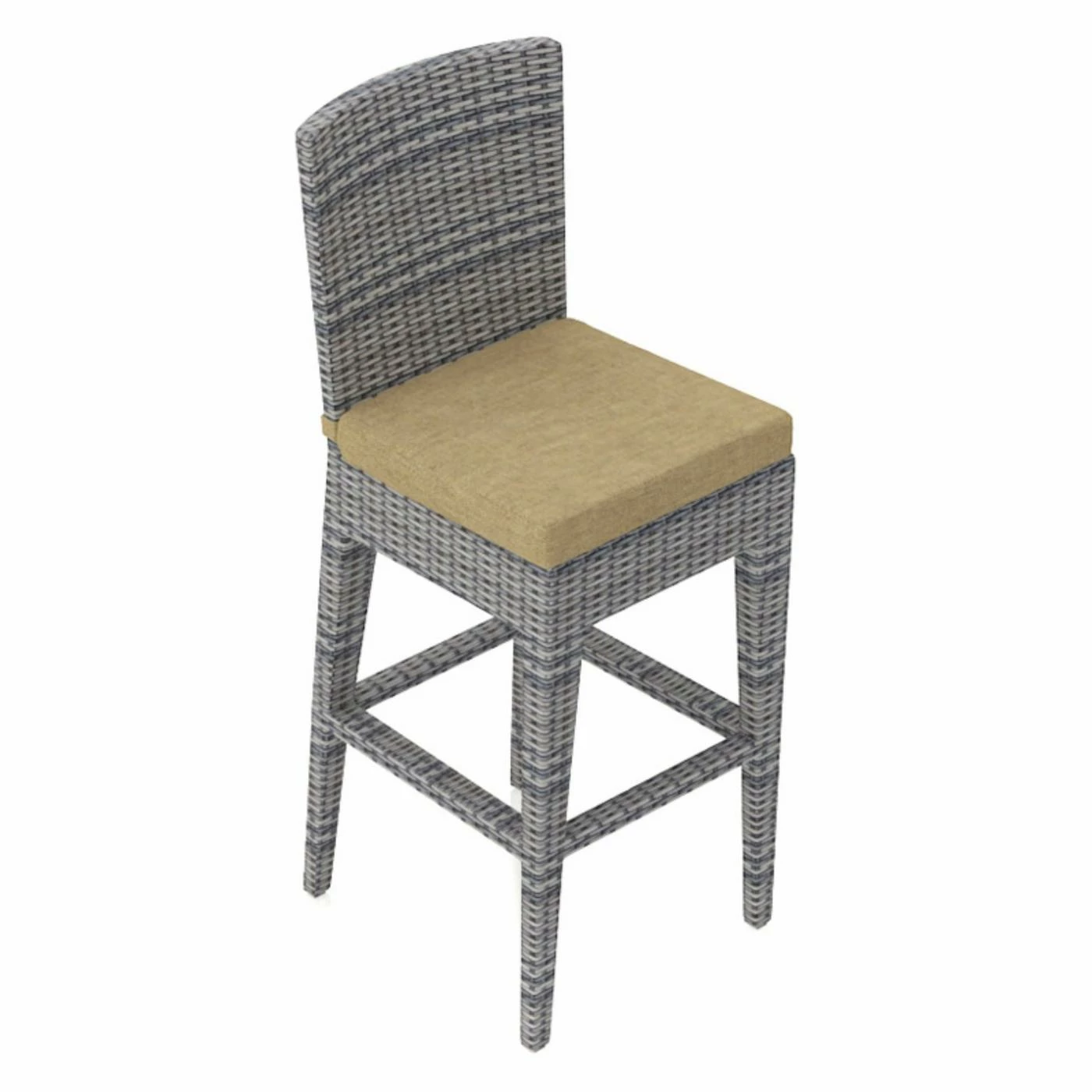 It’s not altitude that’s giving you that feeling, it’s just being in the presence of the Harmonia Living Urbana Bar Chair with Optional Sunbrella Cushion. This bar-height chair shows off a subtle and minimalist design with a bit of panache you’ll be glad to have around any table. The frame of powder-coated aluminum is wrapped with woven resin wicker, giving it a classic look and texture. This moisture-resistant material is made with high-density polyethylene (HDPE) and UV inhibitors so it won’t crack, fade, rot, or peel as it lives outdoors. For added comfort you get to sink into a thick cushion of Dacron-wrapped polyurethane foam. The foam interior is designed to shed moisture and prevent mildewing, and the zip-off Sunbrella fabric cover maintains its vivid color in the face of wind, rain, and sun. You’ve got a full range of Sunbrella fabric colors to choose from, so take the time to find the one that works best for you. This chair is an easy addition to any outdoor bar or bistro table, but it works especially well when paired with other pieces from the Harmonia Living Urbana collection.