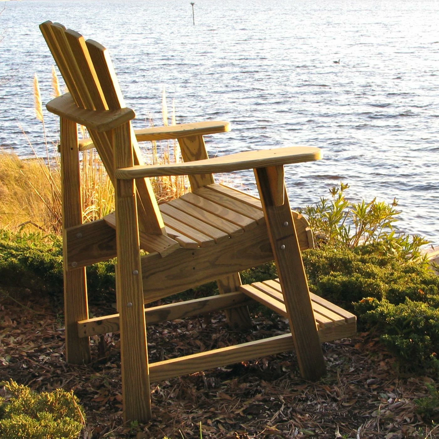 An Adirondack chair that is suitable for use on balconies or around tall railings is truly a unique find. And what luck you found one of such high quality! The Designers Choice Balcony Adirondack Chair is beautifully crafted of high-quality, #1 grade Southern Yellow Pine. It’s protected by environmentally- and family-friendly pressure-treated preservatives that work to give it a lifetime of weather resistance. The nuts, bolts, and screws have a hot-dipped galvanized coating, and the nails are all stainless steel. So you know this chair is built to last. It features a comfort back, a contoured seat, and a footrest for the ultimate in comfort.