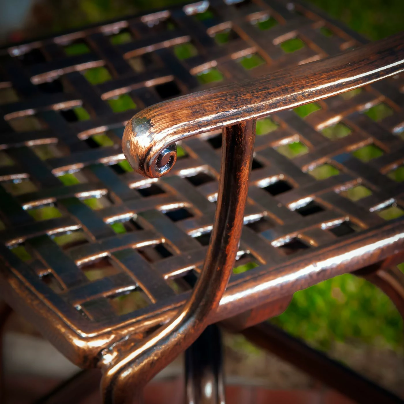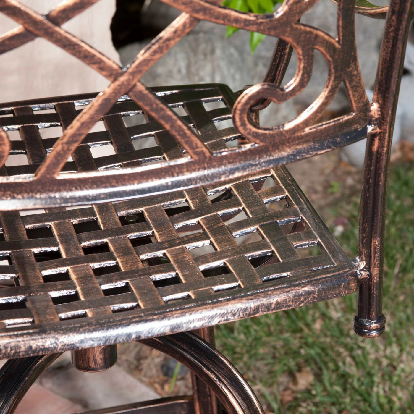 - Sturdy iron seat and cast aluminum frame