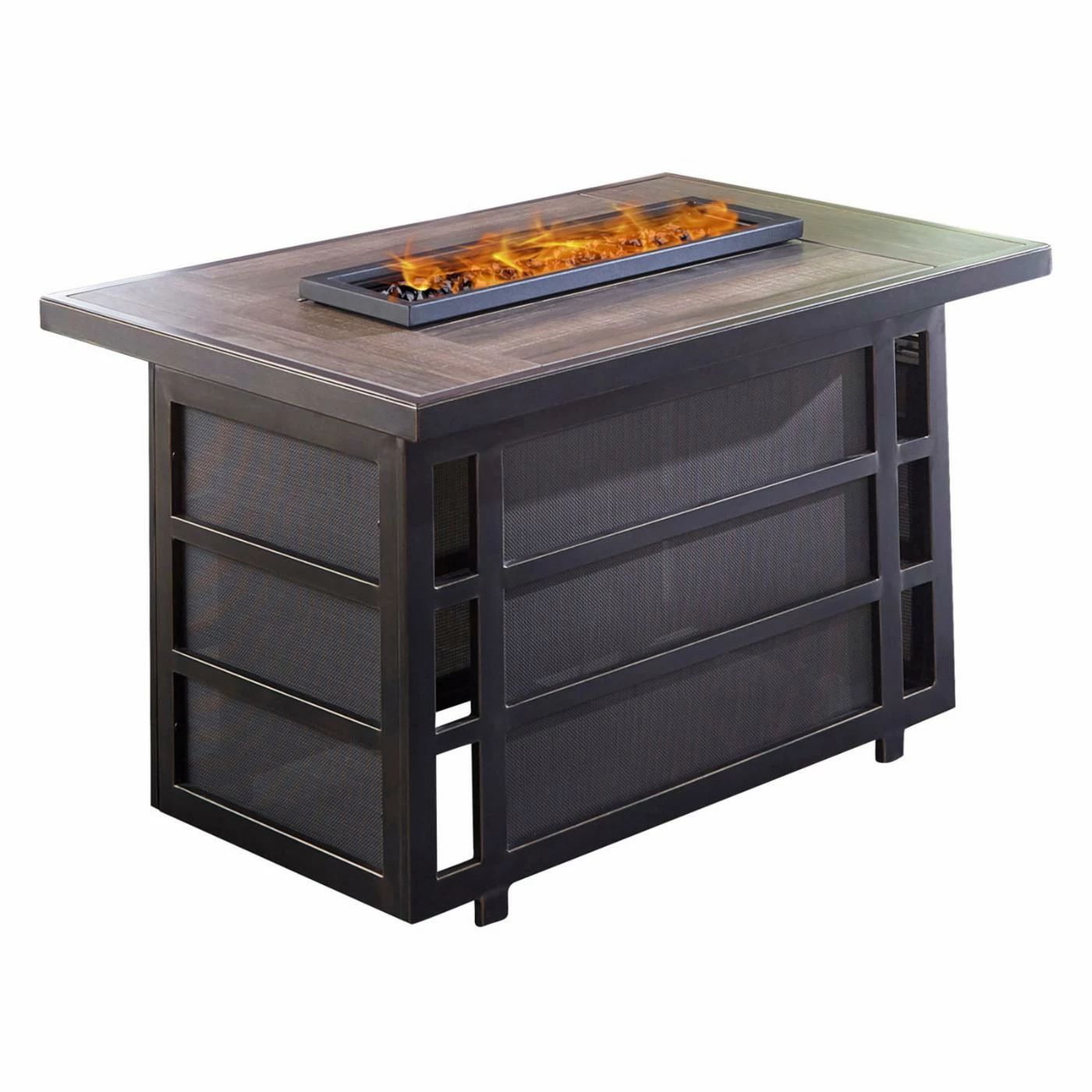 - 40,000 BTU gas fire pit has hidden tank chamber