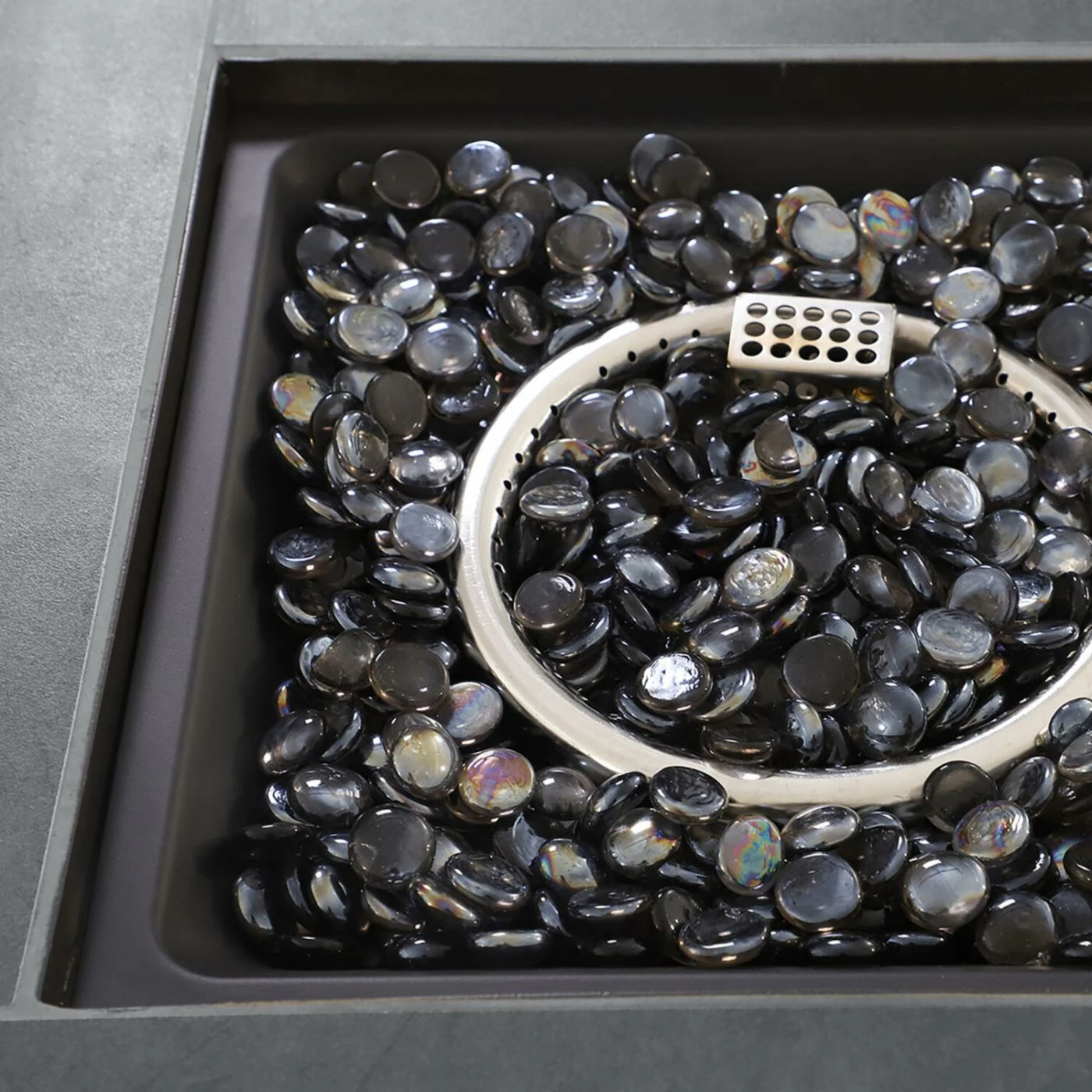 - Includes fire glass