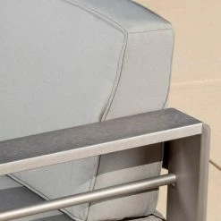 - Aluminum fire pit and chair frame with polyester cushions