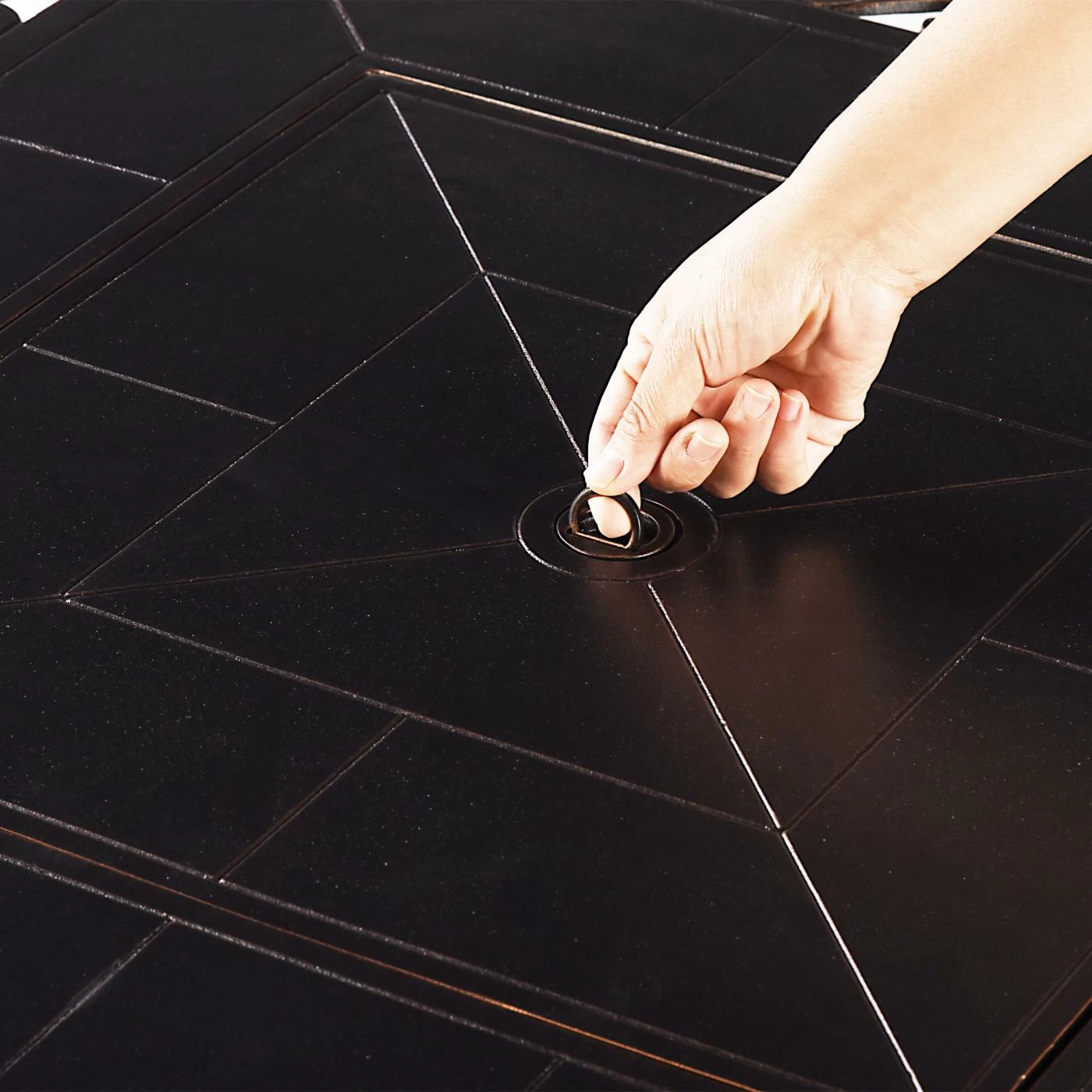 - Fire pit includes clear fire glass and table lid