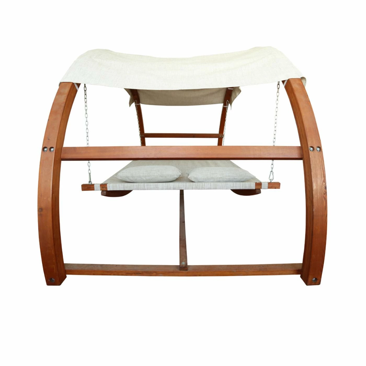 Our larch is grown in managed forests. Larch wood is a naturally moisture-resistant, rot-resistant material that’s dense and durable. The Textilene hammock surface isn’t afraid of moisture, rot, or mildew. You’ll love how the canopy keeps your leisure time shaded and private.