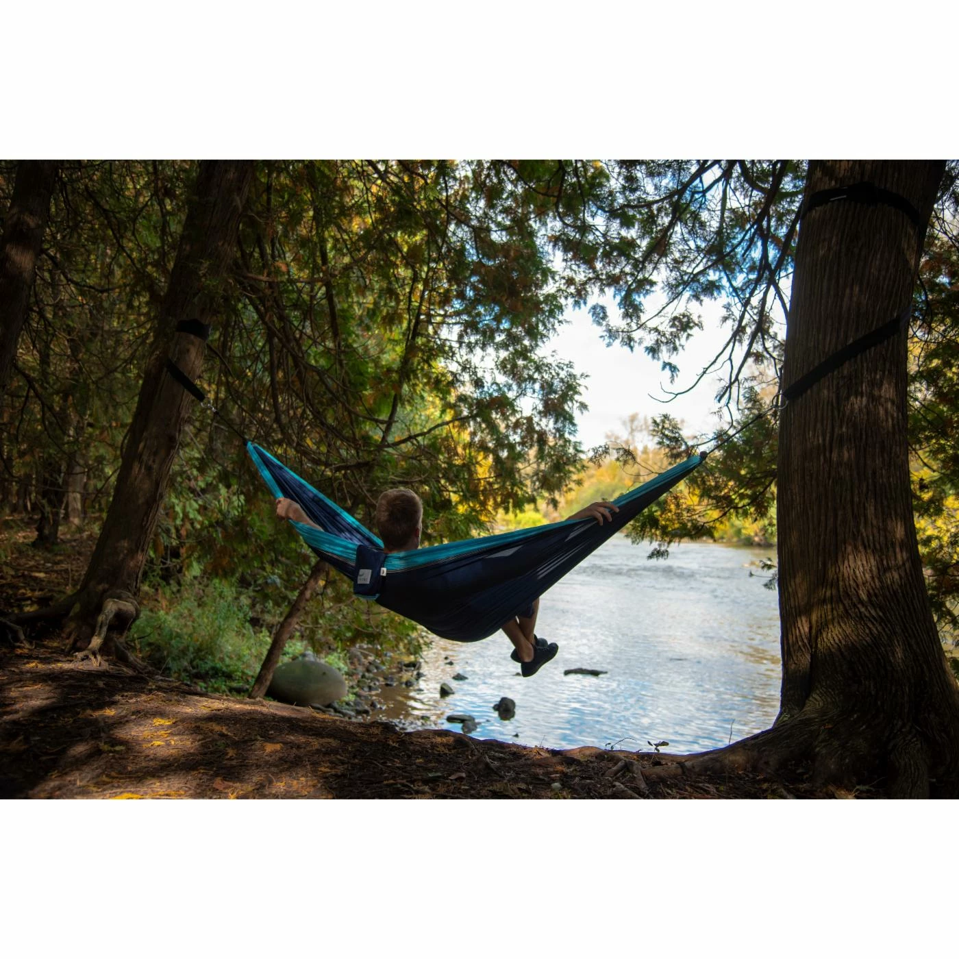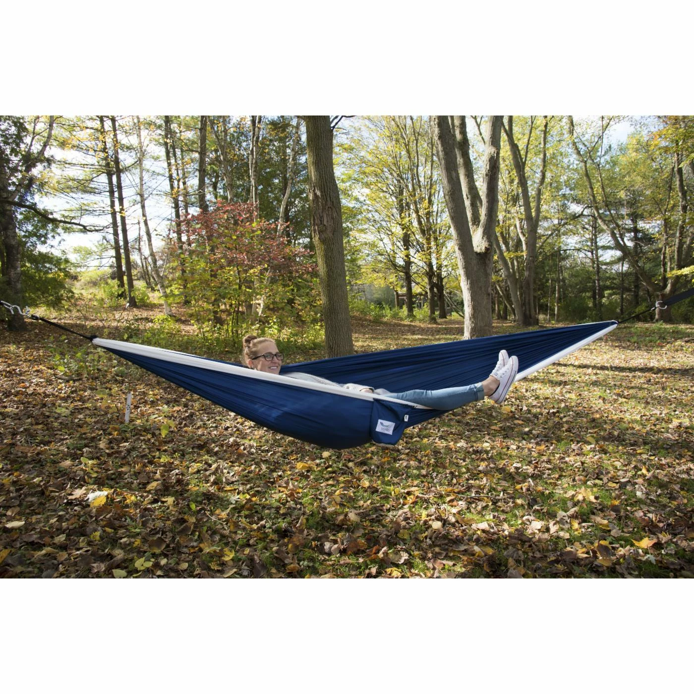 Take the Vivere 10 ft. Parachute Double Hammock along with you on a camping trip so that you can unwind in nature. The nylon craftsmanship and triple stitch construction ensure lasting use. This hammock is design to accommodate up to two people and can support up to 400 pounds. Choose from the available color options.