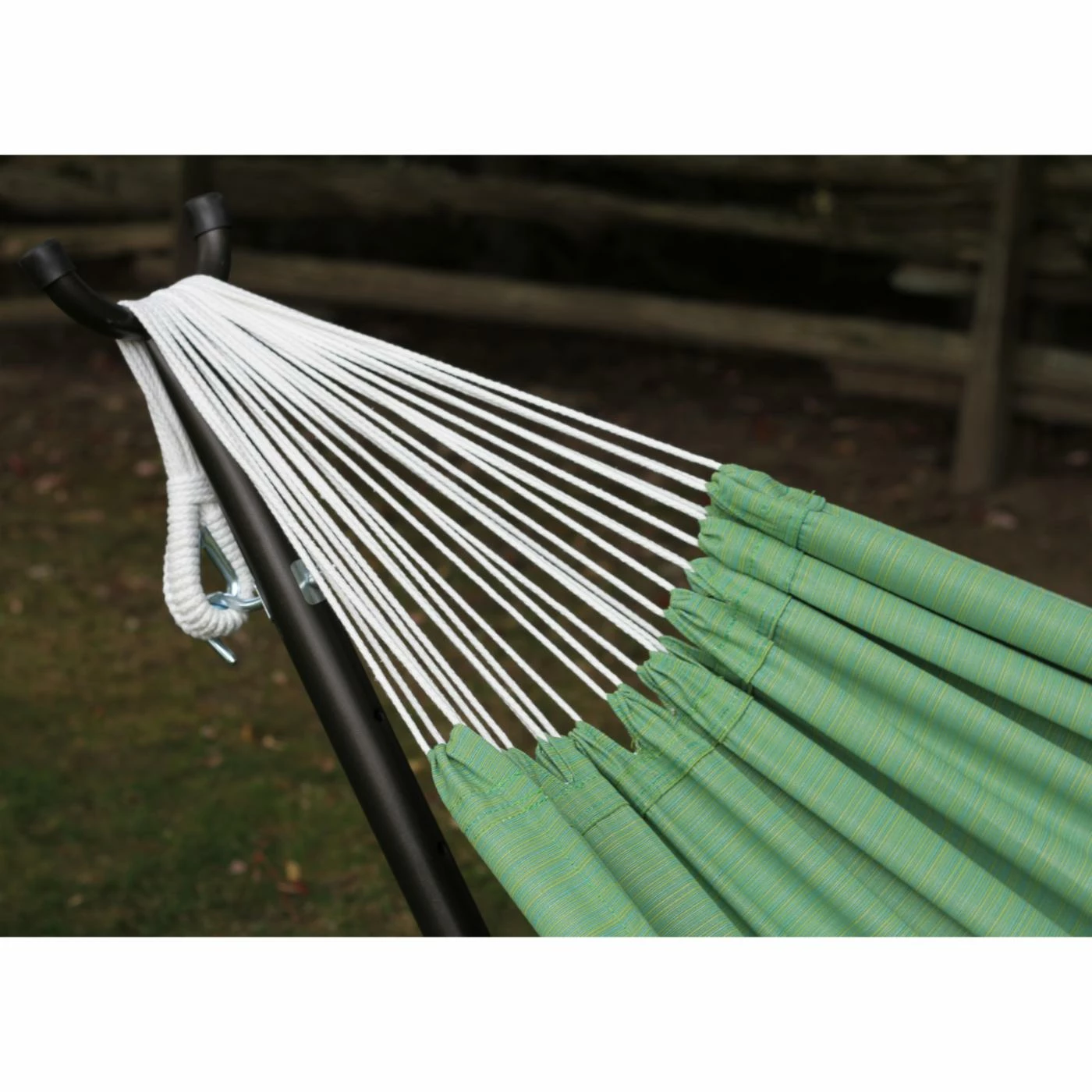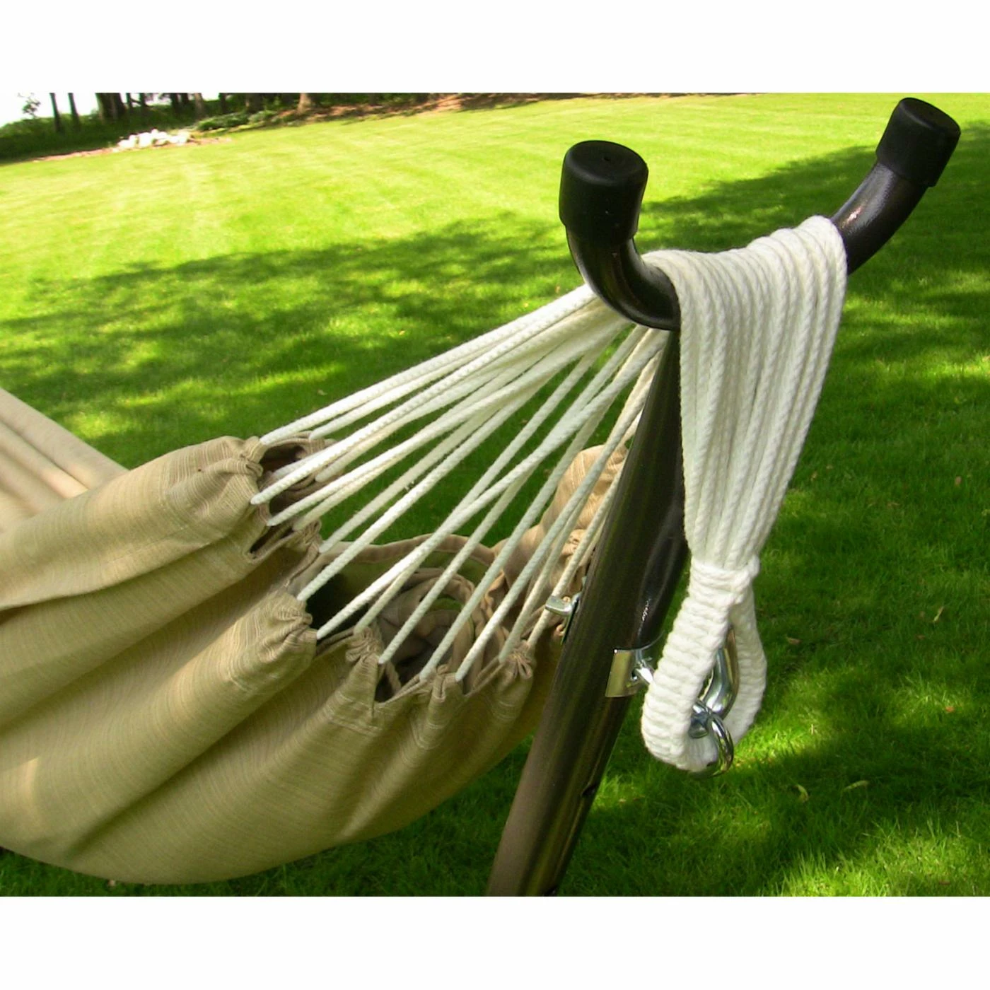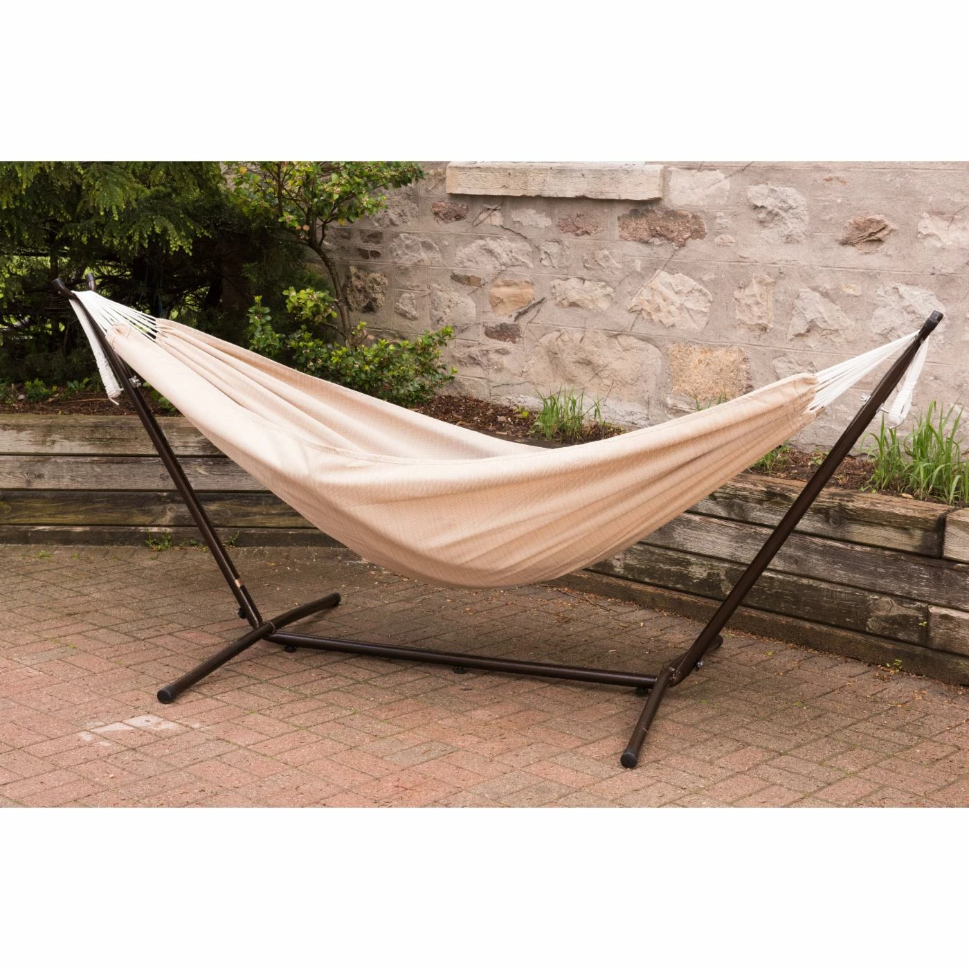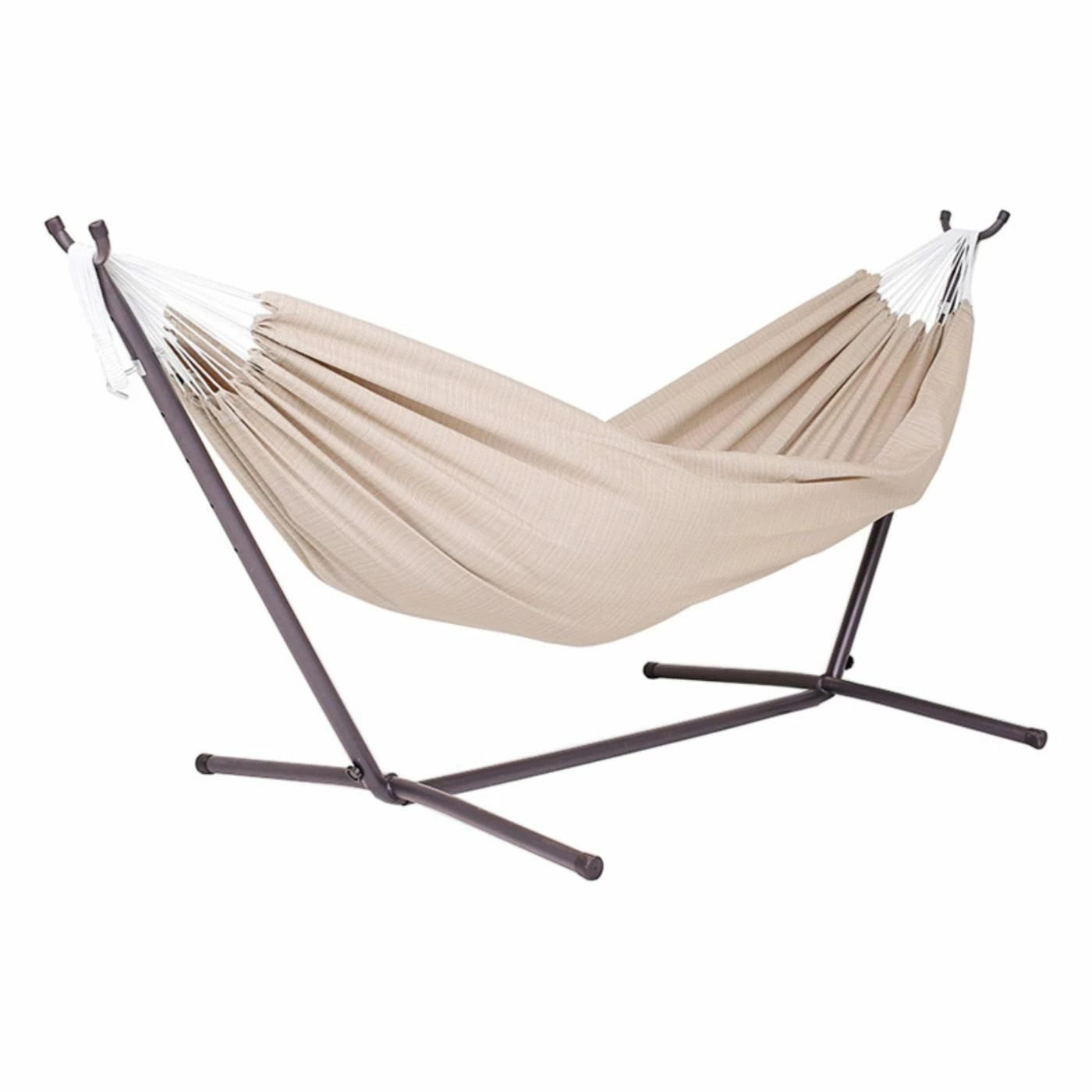 If you’re feeling like just lying back and letting all your cares drift away, then prepare for the Vivere Hammocks Dupione Sand Sunbrella Fabric Hammock and Stand Set. This exquisite hammock is crafted of quilted Sunbrella fabric in your choice of color. It’s as soft as cotton and features just the right amount of space for one person to really stretch out. The included stand is exceptionally durable and sets up quickly without any tools. Sunbrella fabric hammocks are made with a solution-dyed acrylic fabric that is soft for extreme comfort, easy to maintain, stain-resistant, fade-proof, mildew-resistant, and UV-resistant. This high-quality hammock will perform season after season after season after season . . . you get the picture.