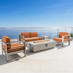 Top 10 🔥 Best Selling Home Conversation Sets Cape Coral Aluminum 5 Piece Fire Pit Patio Set 🛒