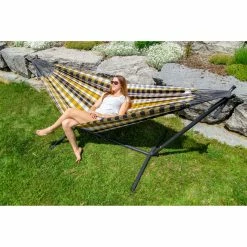 Top 10 😍 Sunnydaze Decor Quilted Double Fabric Hammock With Multi-Use Universal Steel Stand ⌛