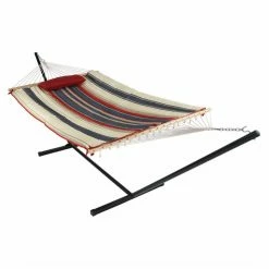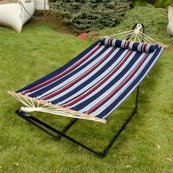 Wholesale 👍 Quilted Vivere Hammocks Dupione Sand Sunbrella Fabric Single Hammock And Stand Set 🎉