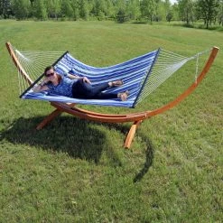 Best Sale ๐ Sunnydaze Decor Quilted 12 Ft. Double Fabric Hammock With Curved Arc Stand ๐