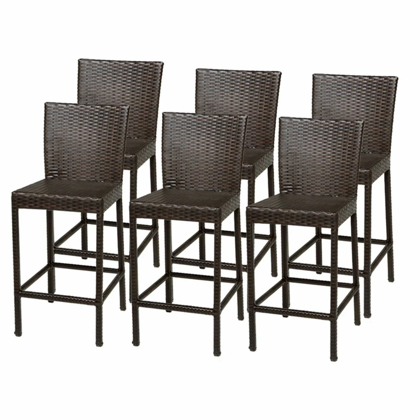 Craft a memorable getaway for your porch or patio with some help from the TK Classics Napa Bar Stool – Set of 6. This set comes with six matching bar stools. Each of the stools starts with a rugged frame of powder-coated aluminum for maximum stability. The aluminum is overlaid by a shell of woven synthetic wicker and comes finished in a dark espresso brown. Both the wicker and the aluminum are designed to resist moisture and sun damage.