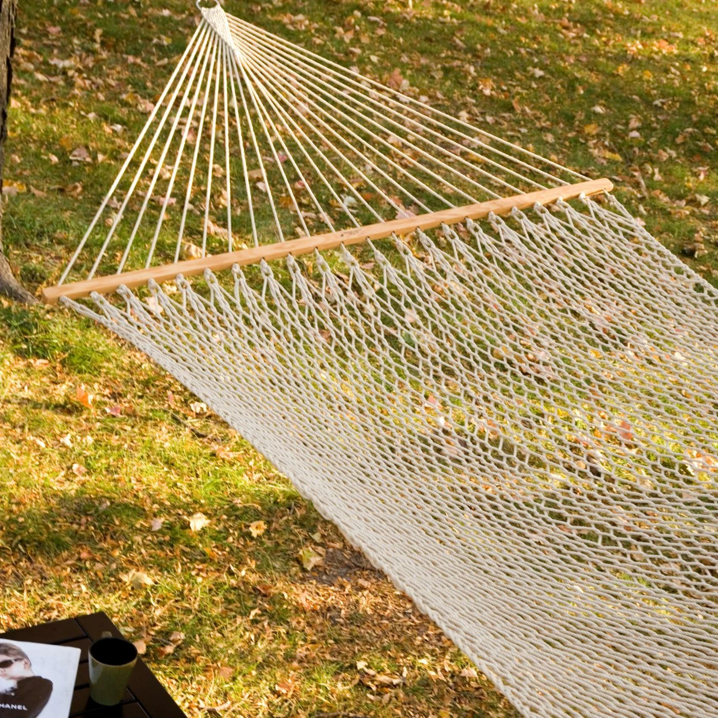 The Twin Oaks SilkSpun XL Flax Rope Hammock has a natural color that will look great in any setting and offers a traditional look. The SilkSpun material in this hammock has the comfort of cotton and the strength of polyester. It is the same material as that used in popular hammocks by Pawley’s Island and other manufacturers. This material will not fade and is mold and mildew resistant. Enjoy this hammock alone or with a friend since it is built to hold two and has a weight capacity of 450 pounds.